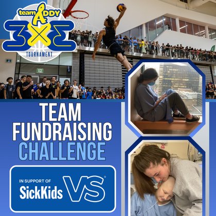 Support our team in the Team Addy in the 3x3 Fundraising Challenge, playing for more than just wins. Every dollar supports SickKids, funding life-saving care, research, and hope for kids fighting cancer.